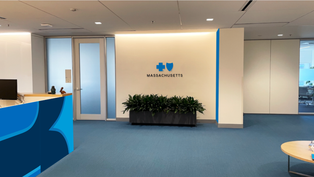 After partnering with an external agency to craft a bold new brand identity, Blue Cross Blue Shield of Massachusetts needed to operationalize that vision across every internal and external touchpoint — from signage and stationary to executive presentations and physical office environments.