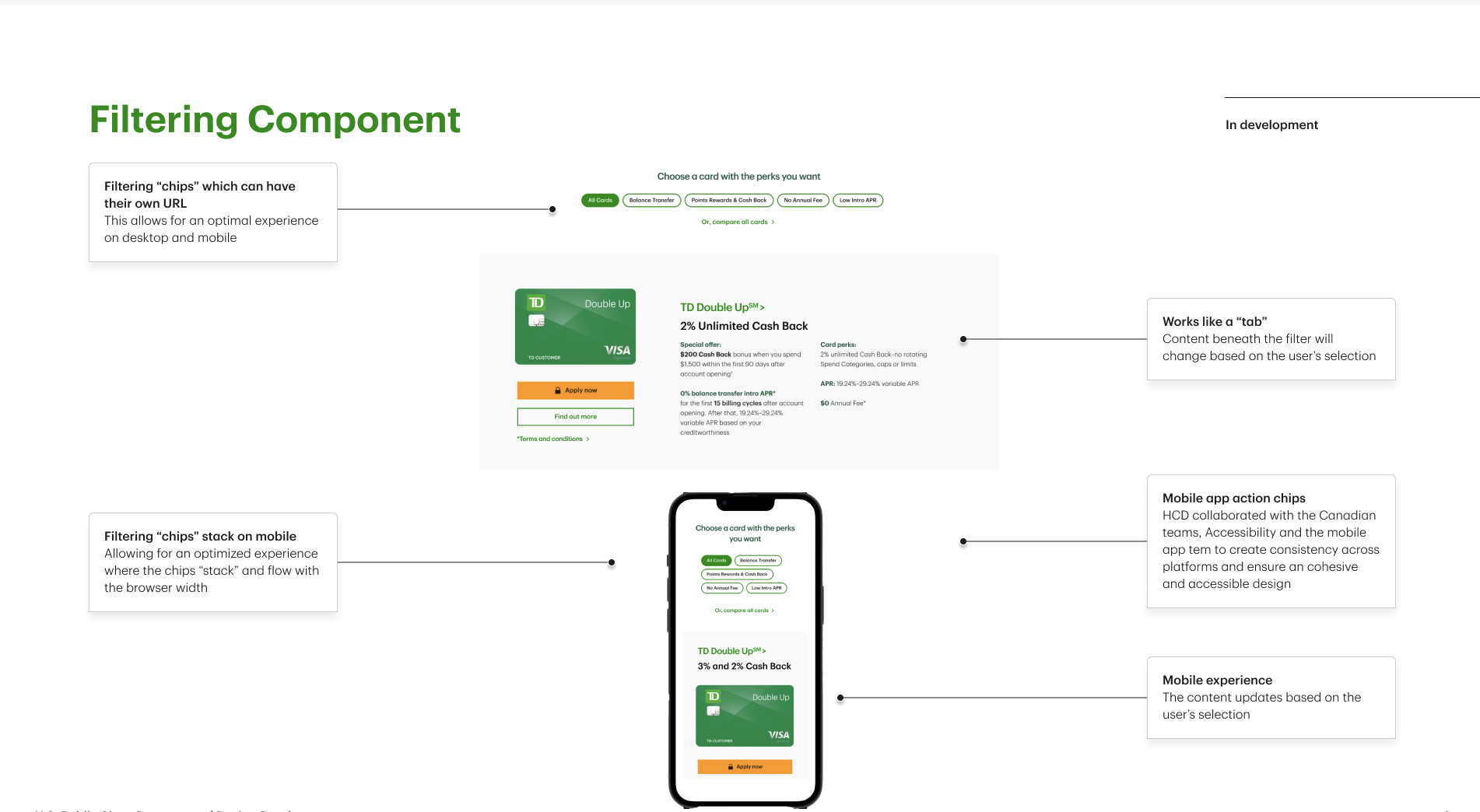 Created a modular comparison interface—essentially a tabbed system—by creatively combining existing components, allowing users to compare TD Clear credit card tiers seamlessly.